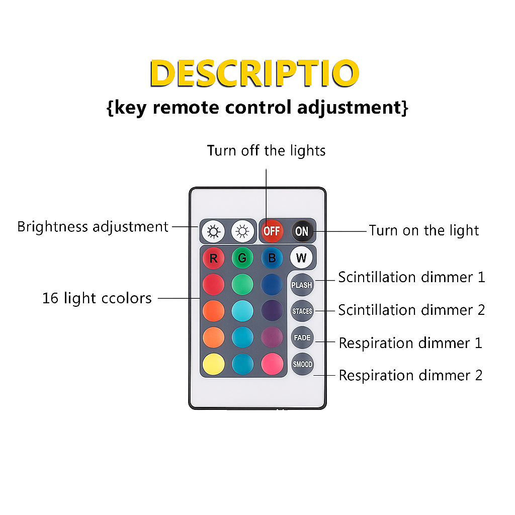 2. Adjust Settings – Use the remote or onboard buttons to set color, brightness, and rotation.